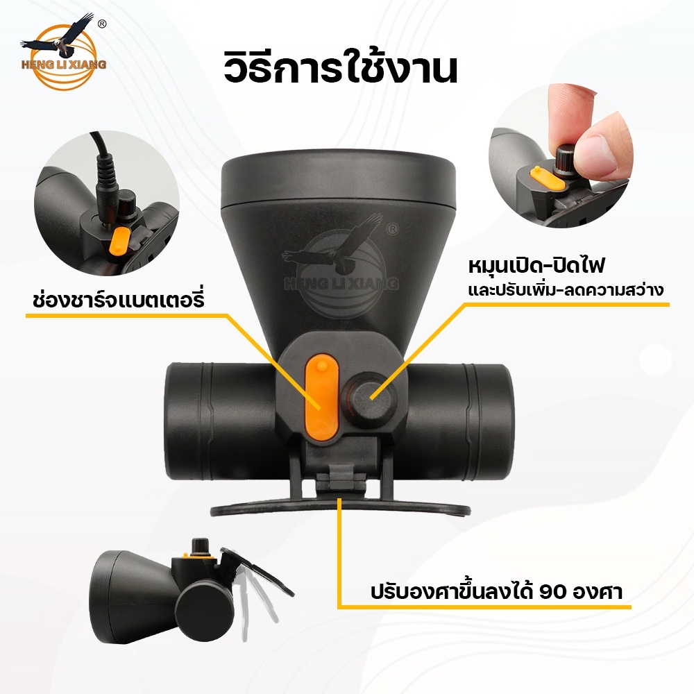 HLX ไฟฉายคาดหัว ตรานก กันน้ำ ลุยฝนได้ ไฟฉาย LED หรี่แสงไฟ ชาร์จไฟได้ หม้อแบต เดินป่า ส่องกบ กรีดยาง แบตอึด HL-633