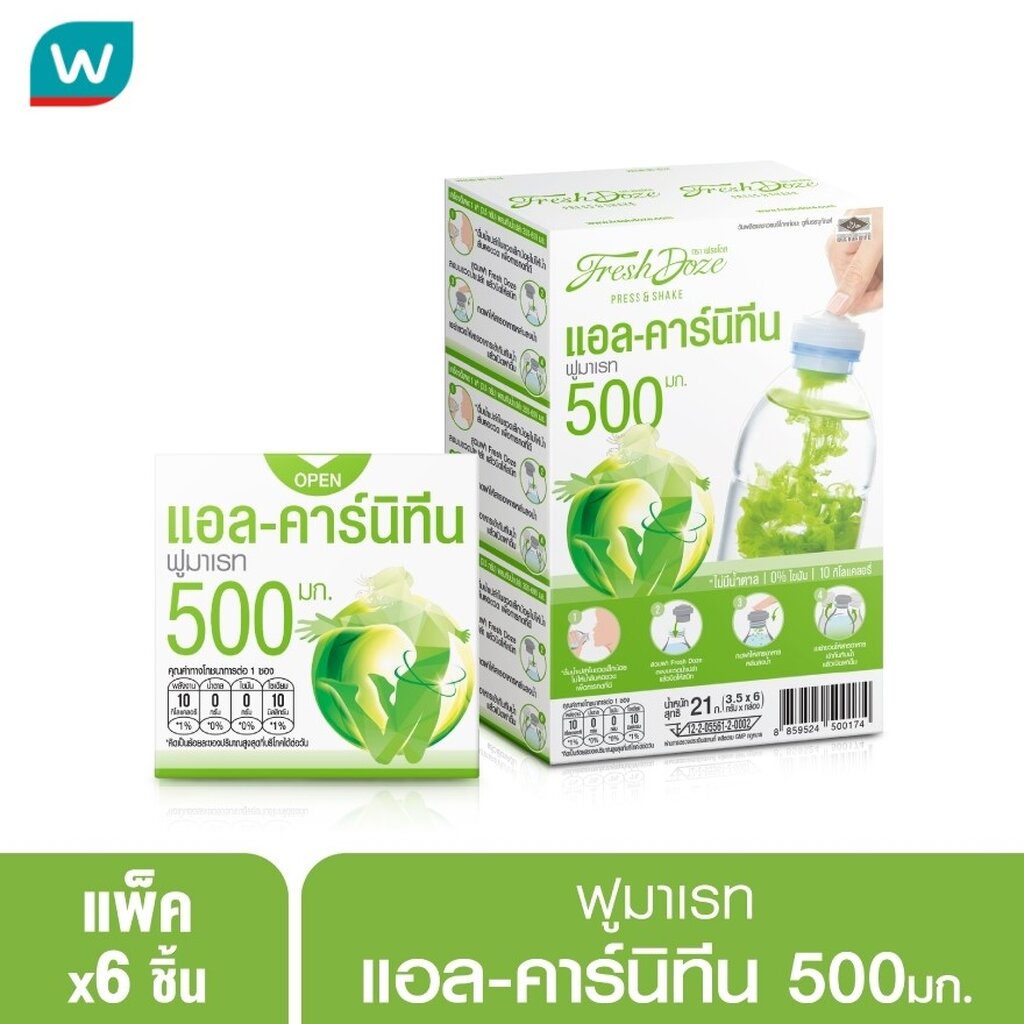Fresh Doze เฟรชโดส เพรส แอนด์ เชค แอลคาร์นิทีน ฟูมาเลท 500มก. รสแอปเปิ้ล 21ก. 6ชิ้น