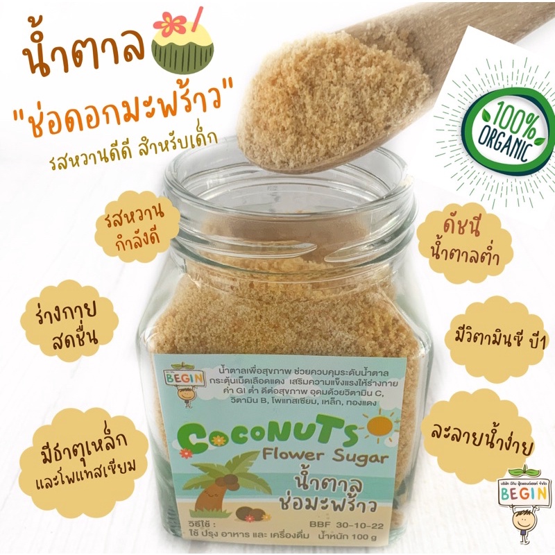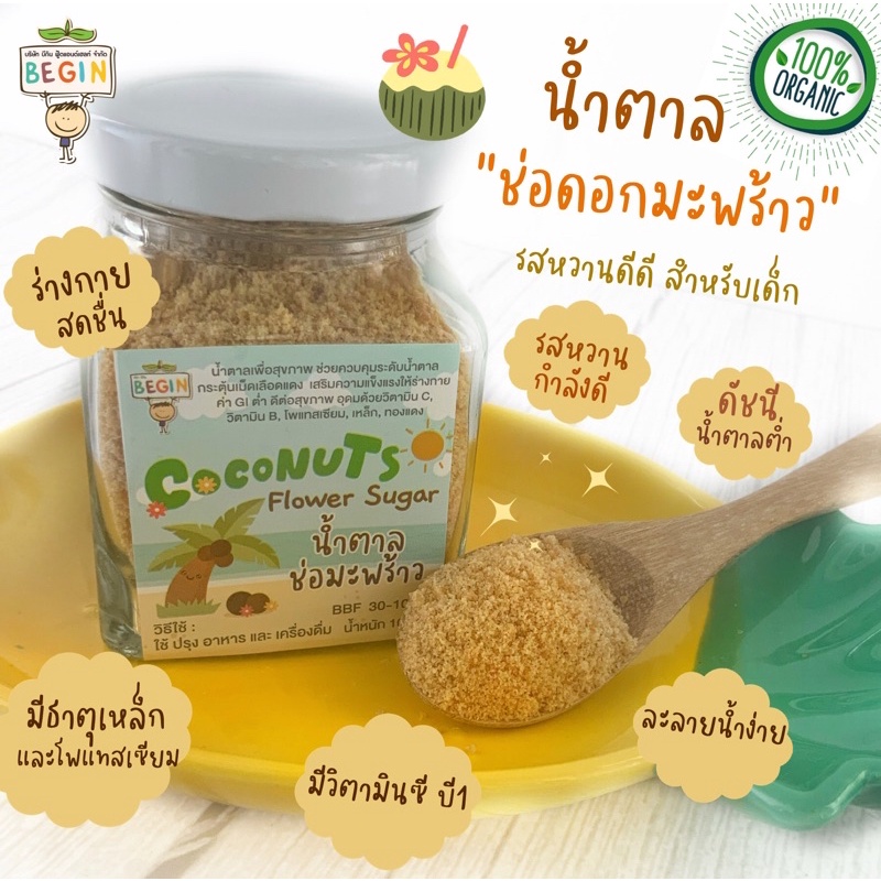 Begin น้ำตาลมะพร้าวออแกนิค100% สำหรับเด็กและคนรักสุขภาพ วิตามินสูง เครื่องปรุงเด็ก อาหารเด็ก น้ำตาลเด็ก ซอสปรุงรสเด็ก