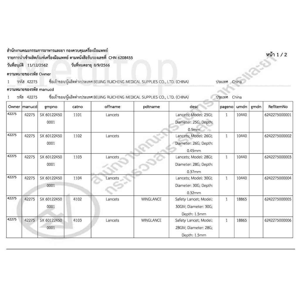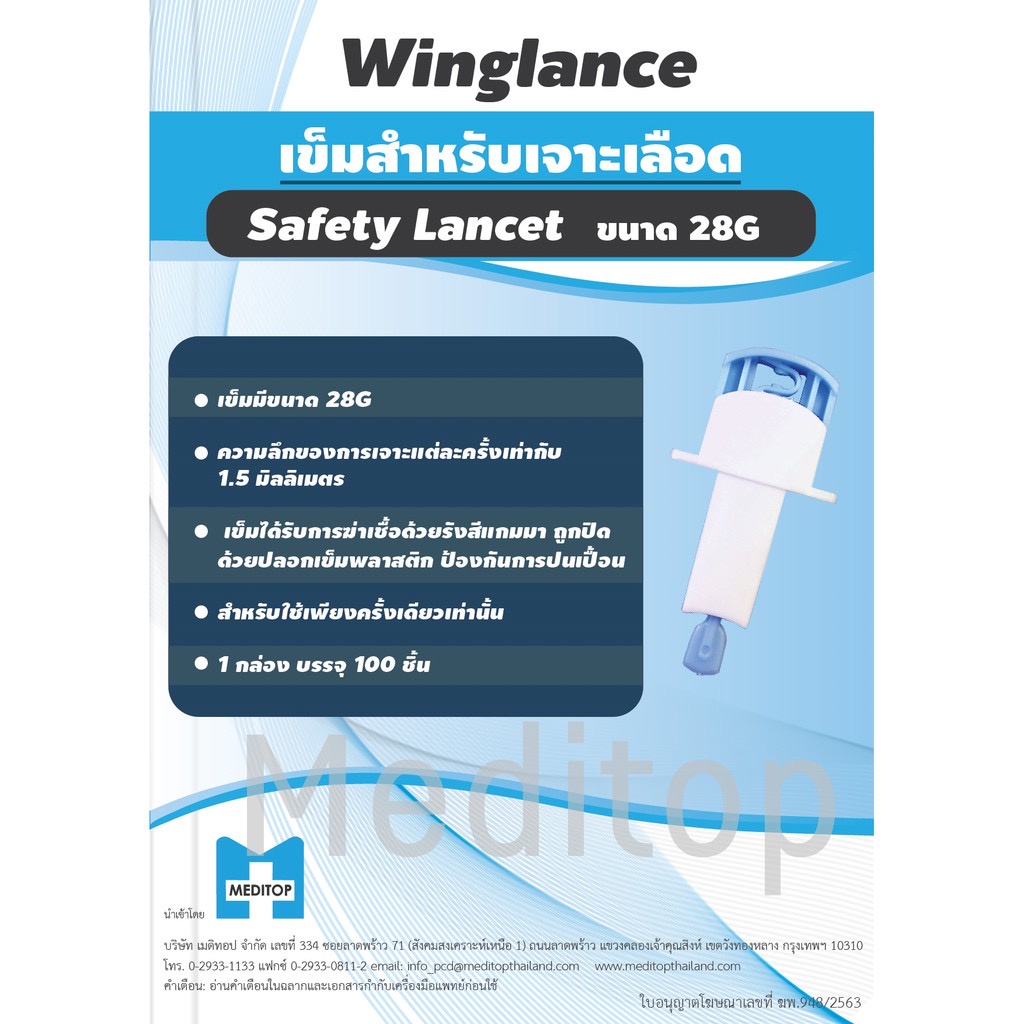 Safety Lencet เข็มเจาะเลือดปลายนิ้ว ขนาด 28G ใช้ครั้งเดียวทิ้ง เพื่อวัดน้ำตาลในเลือด MDT
