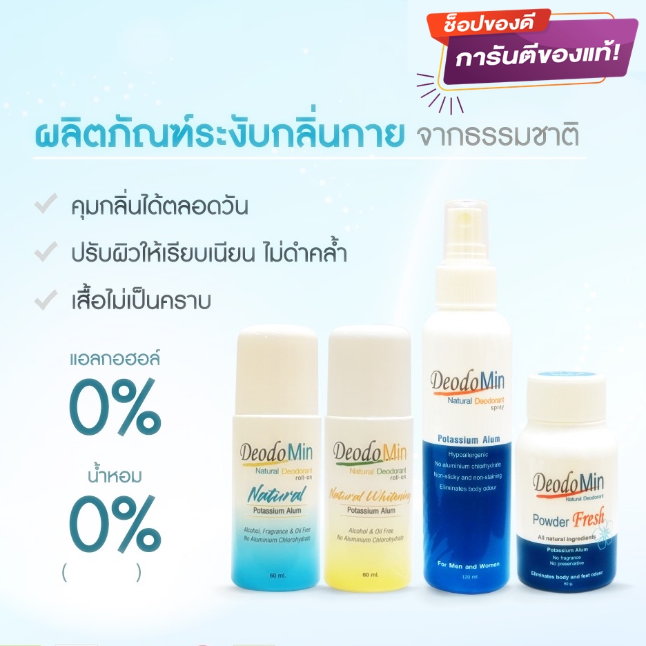 Deodomin โรลออน สเปรย์ แป้ง สารส้ม ดีโอโดมิน แป้ง 50G โรออน 60ml สเปรย์ 120mL 1ขวด