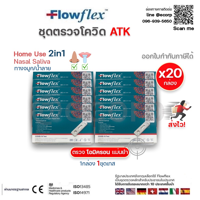 (20กล่อง)ชุดตรวจโควิด Flowflex 2in1 กล่อง 1เทส ATK ตรวจโอมิครอน จมูกน้ำลาย Nasal Saliva Swab