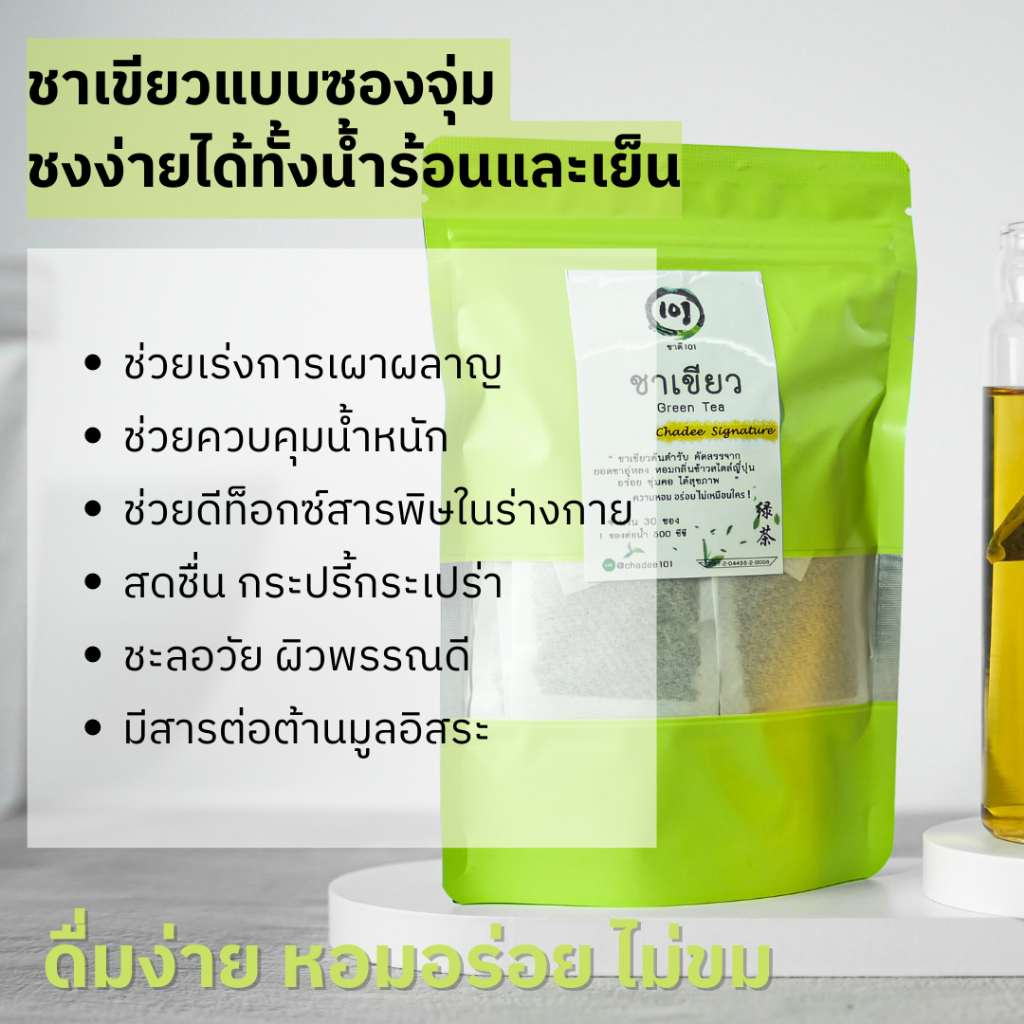 ชาเขียว แบบซองจุ่มพร้อมชง | Green Tea หอมข้าวสไตล์ญี่ปุ่น ไม่ขม ชาดอยแม่สลอง ไร่ชา 101 พรีเมียม