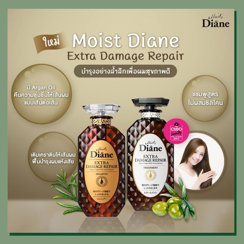 [แพ็คคู่] Moist Diane Shampoo+Treatment แชมพู+ครีมนวด ปราศจากซัลเฟต ซิลิโคน 450 ml