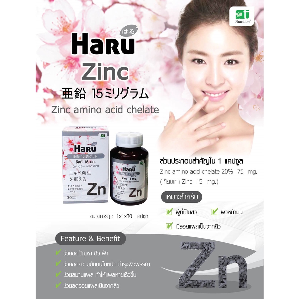 Haru zinc 15 mg ฮารุ ซิงค์ Haru Zinc 15 mg. 30 Cap.[6108]