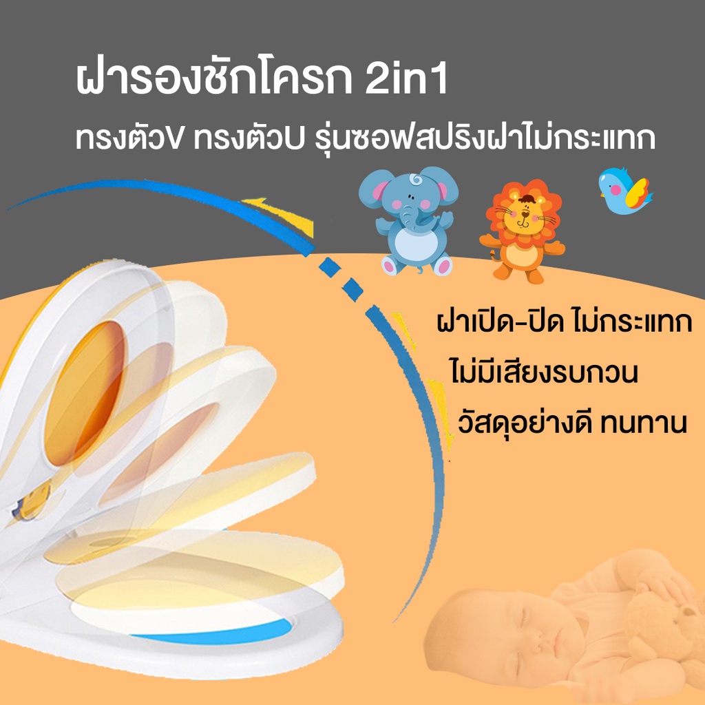 ฝารองชักโครก 2in1 ทรงตัวV/ทรงตัวU รุ่น ซอฟสปริง ลดการกระแทก อย่างดีใช้ได้ทั้งเด็กและผู้ใหญ่