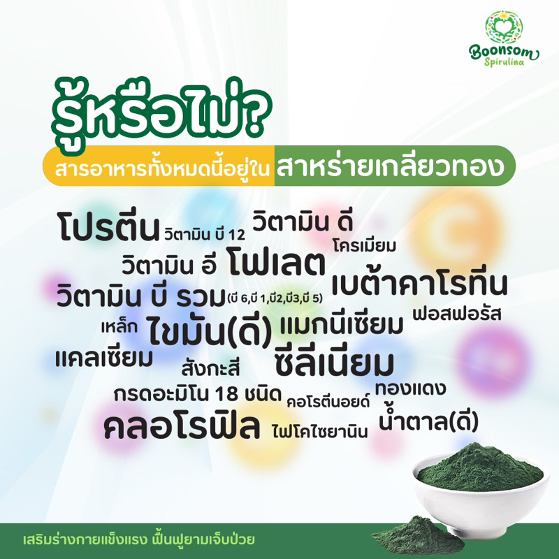 3ซอง x สาหร่ายเกลียวทองบุญสมฟาร์ม Spirulina 100% ชนิด ซอง (รีฟิว บรรจุ250 เม็ด: 2เดือน)