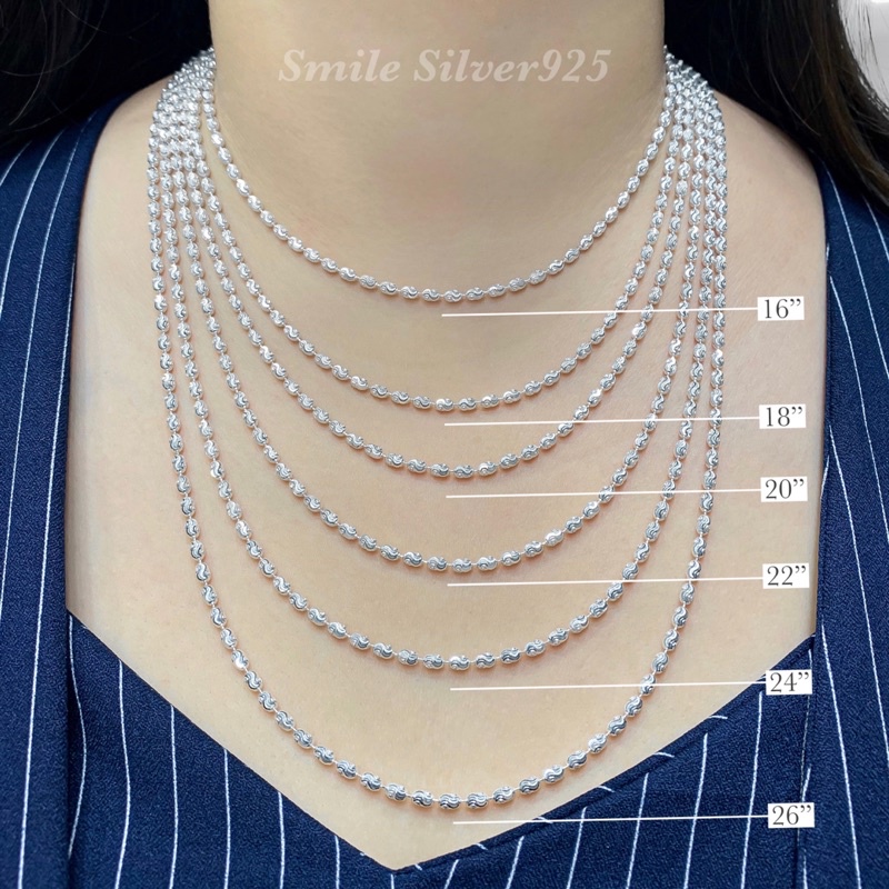 สร้อยคอเงินแท้ 92.5% Italy ชุบทองคำขาว ลายShort ballตัดเพชร ขนาด 2มิล