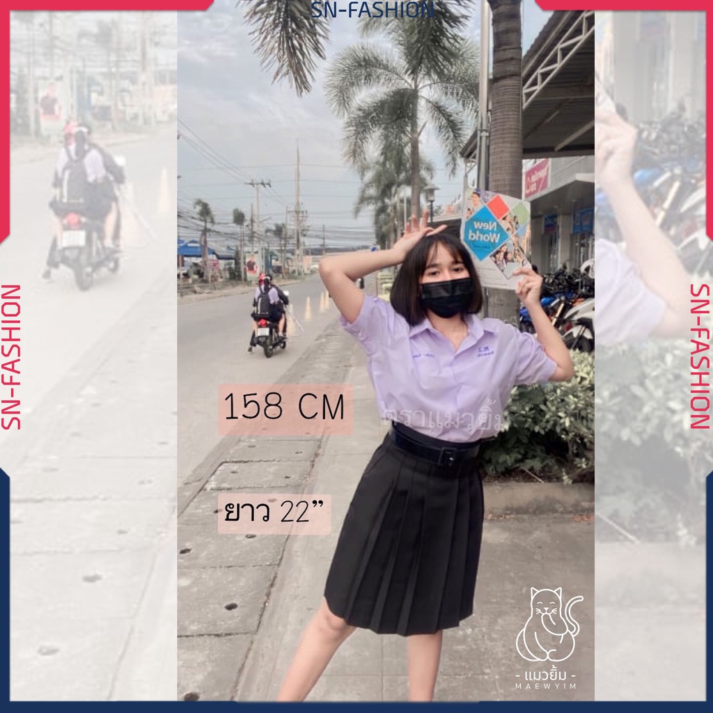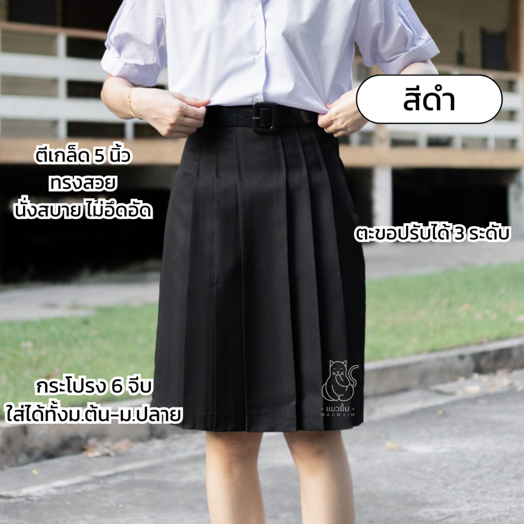 กระโปรงนักเรียน ทรงแคบ สีดำ ยาว22นิ้ว ผ้ามันลีวาย กระเป๋าลับ ม.ต้น ม.ปลาย ตราแมวยิ้ม มีบิลใบเสร็จโรงเรียน