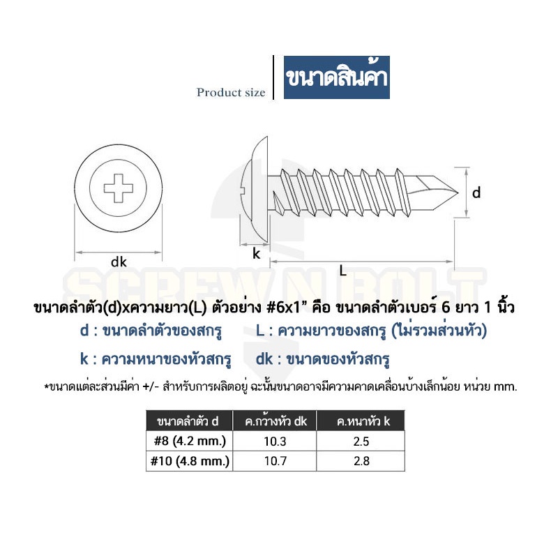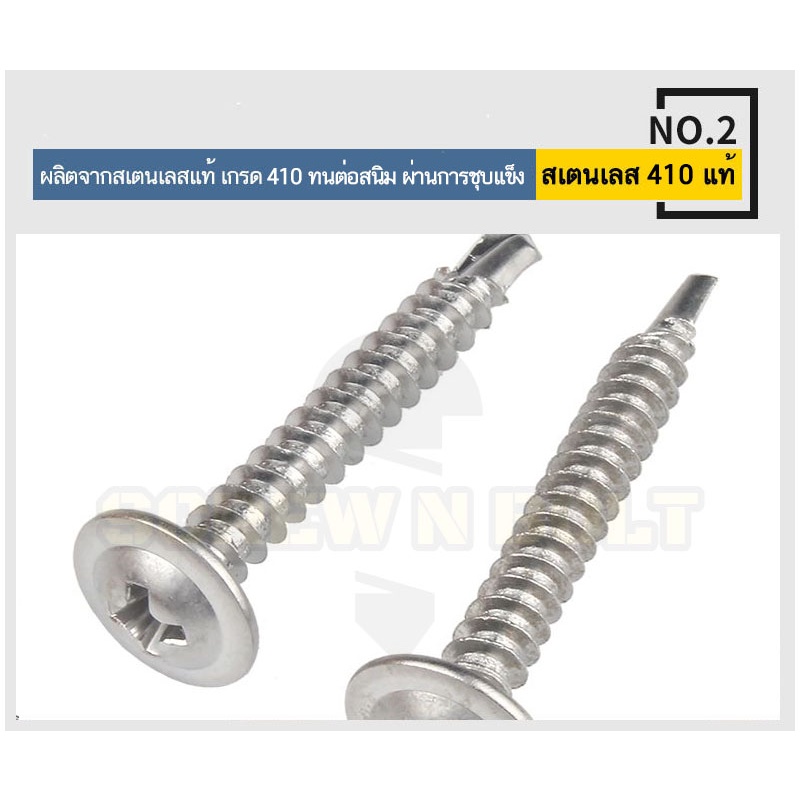 น็อต สกรู หัวกลมแบน แฉก สแตนเลส 410 ปลายสว่าน #8 #10 / Wafer Head Phillip Self Drilling Screw SUS410