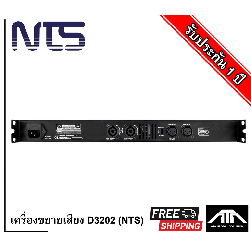 NTS D 3202 เพาเวอร์แอมป์ 1U น้ำหนักเบา กำลังขับ 480W มีวงจรป้องกันแรงดันไฟ