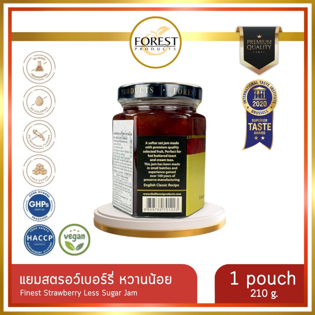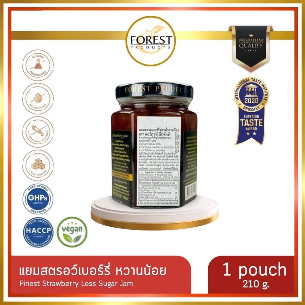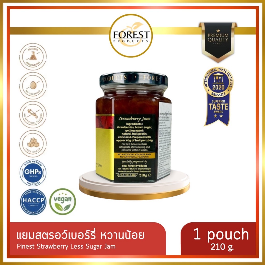 Forest แยมสตรอว์เบอร์รี่ 210 g. หวานน้อย (Finest Strawberry Less Sugar Jam)