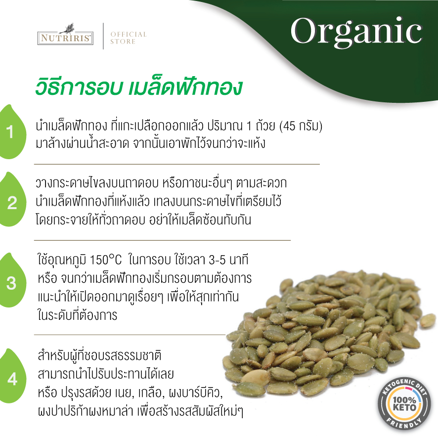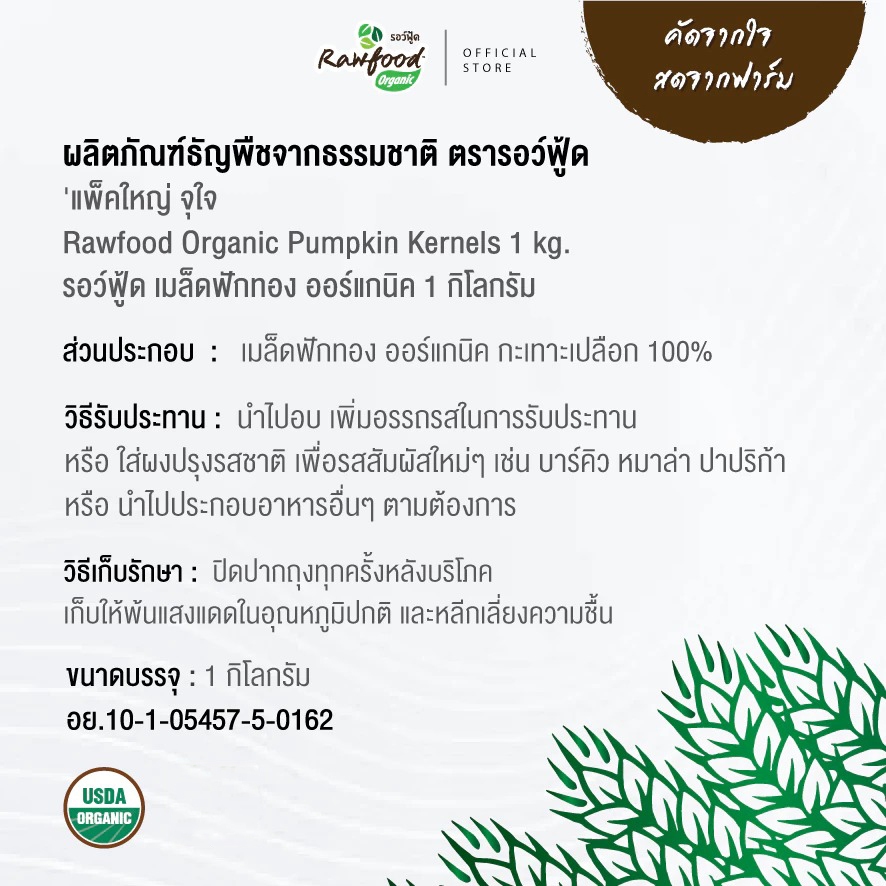 เมล็ดฟักทอง ออร์แกนิค100% 1 กก Exp.2/2028 มีอย ถูกหลักอนามัย ไร้สารเคมีตกค้าง (Organic Pumpkin Kernels) Rawfood Brand