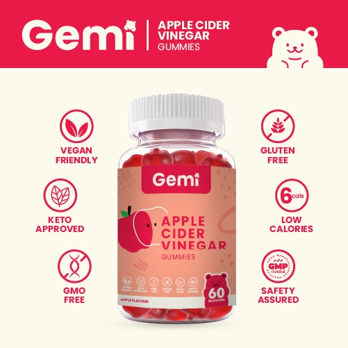 Gemi เจมมี่ แอปเปิ้ลไซเดอร์วิเนการ์และกู๊ดไนท์สลีพกัมมี่ รวม 4 กระปุก / Gemi ACV & Goodnight Sleep Gummy / GemiGummi