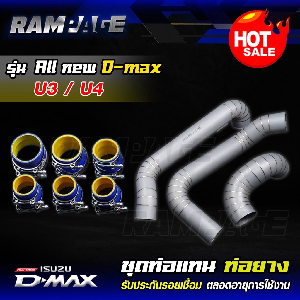 ท่อแทนท่อยาง แรมเพจ rampage งานควั่น สแตนเลสยิงทราย เกรด 304 All New D-Max EURO3/4(ปี2012-2019) พร้อมท่อยางและเข็มขัด