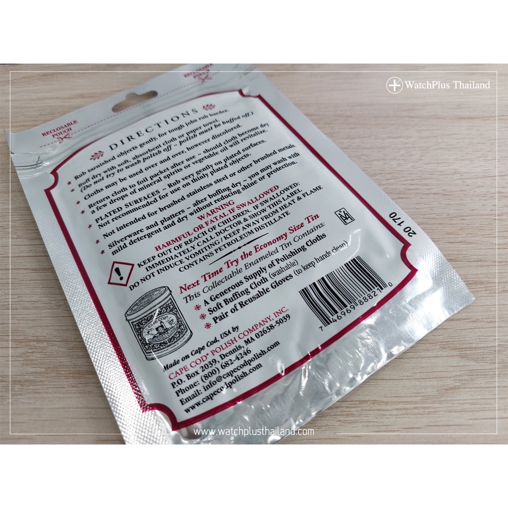 WPT อุปกรณ์ซ่อมนาฬิกา : Cape Cod Metal Polishing Cloths ผ้าเช็ดโลหะ ผ้าขัดลบรอยขนแมว (ขัดเงา)
