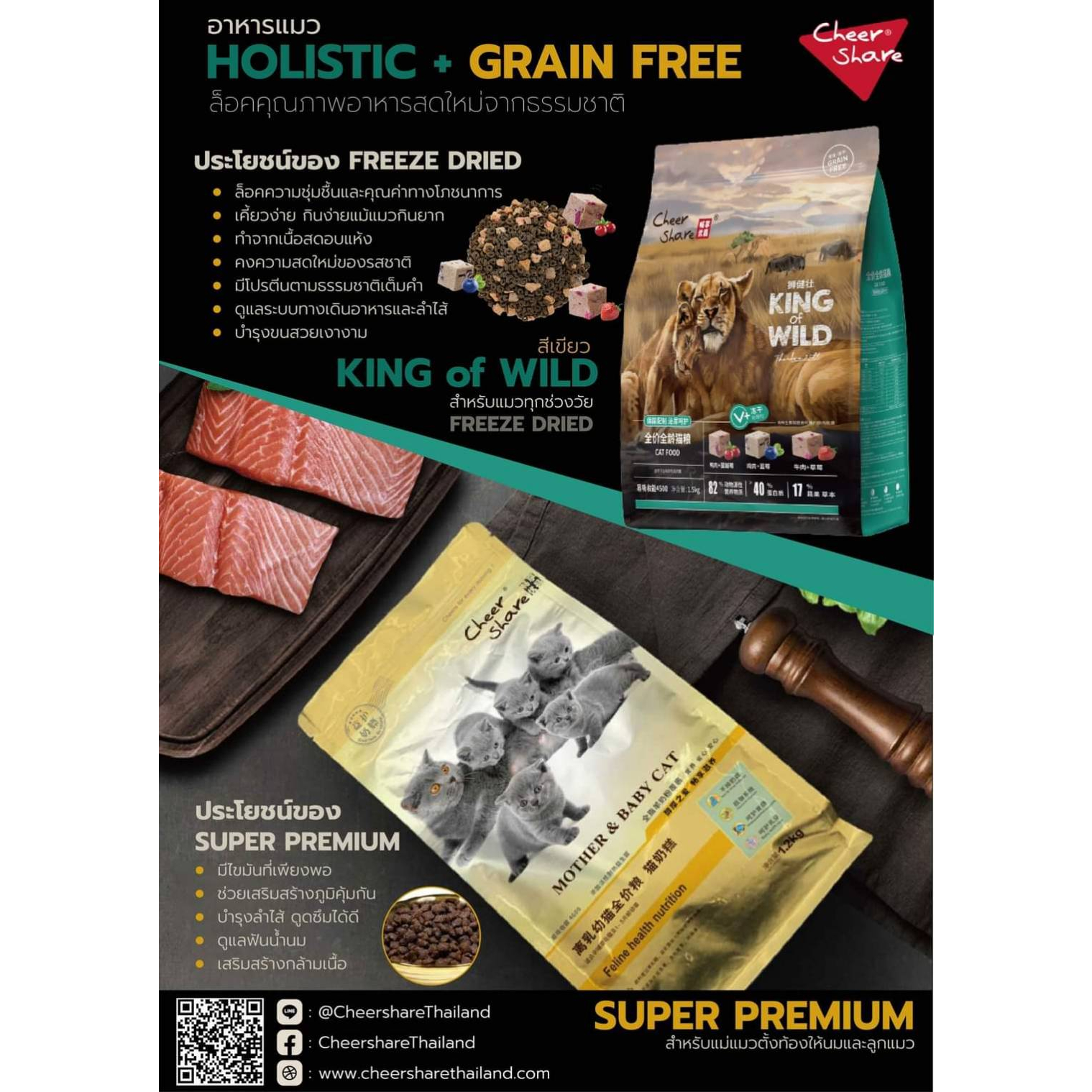 ✅แบ่งขาย✅ 𝐂𝐡𝐞𝐞𝐫 𝐒𝐡𝐚𝐫𝐞 อาหารแมว เกรด Holistic Grain-free สูตรKing of Wild ผสมฟรีซดราย แมวทุกช่วงวัย