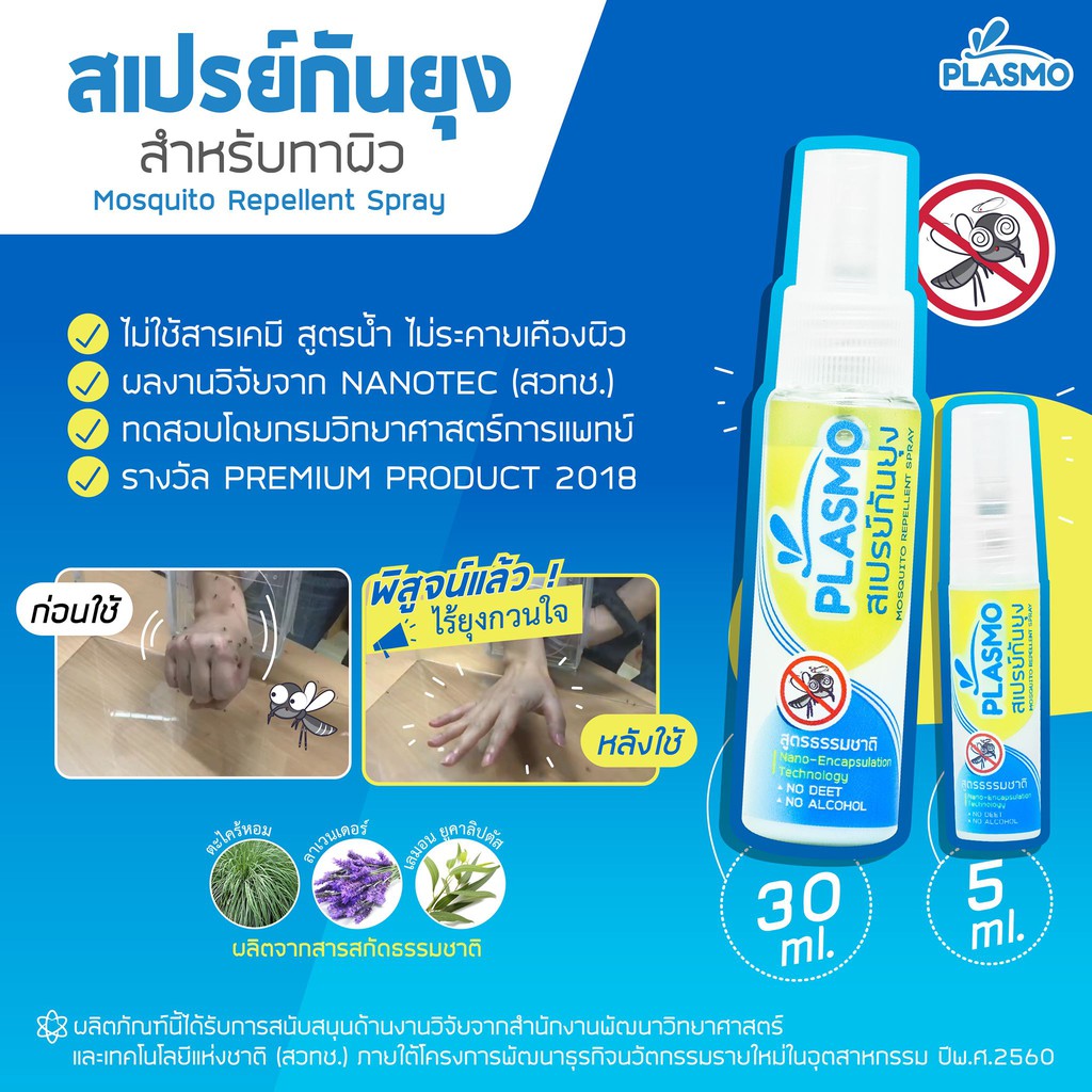 พลาสโม สเปรย์โลชั่นกันยุงกลิ่นตะไคร้หอม ขนาด 30ml
