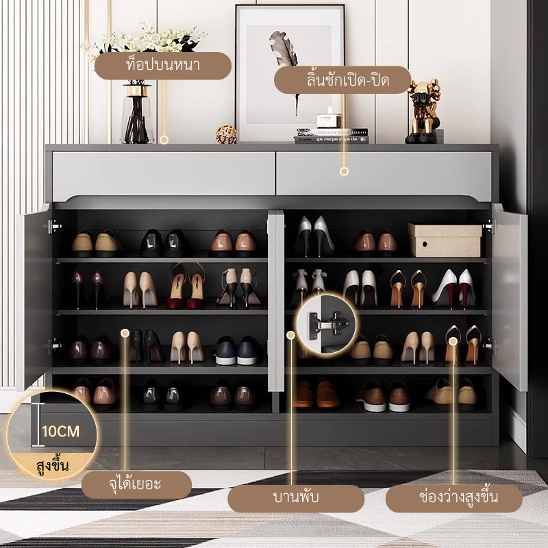 ตู้รองเท้า ตู้เก็บรองเท้าโทนสีเทา มีให้เลือกหลายขนาด สามารถใช้เป็นตู้เก็บของอเนกประสงค์ได้ ดีไซน์หรู