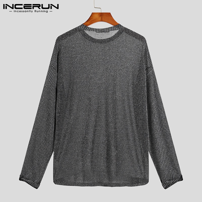Incerun เสื้อยืดแขนยาวคอกลมเสื้อทรงหลวมแฟชั่นผู้ชาย