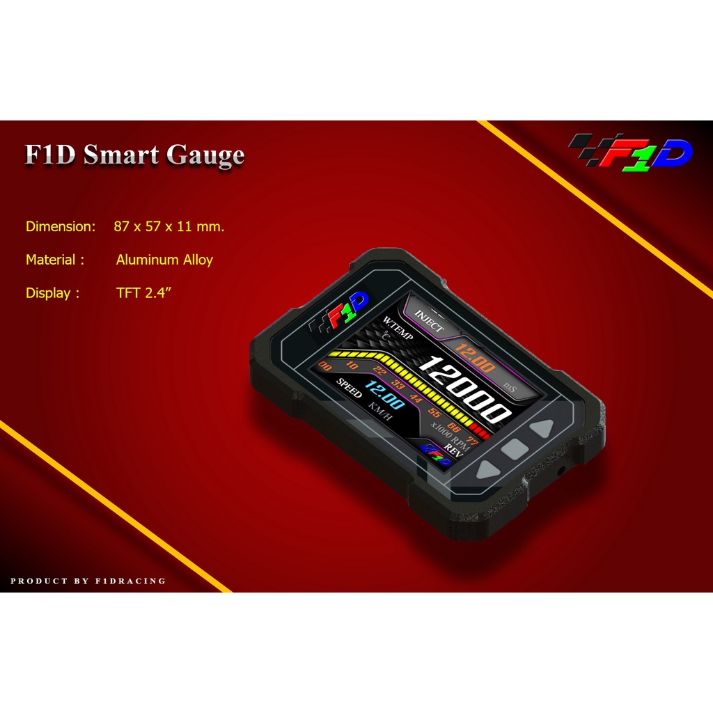 F1D Smart Gauge มอเตอร์ไซค์ วัดรอบ วัดความร้อน แจ้งเตือน ลบโค้ด จับเวลา AFR