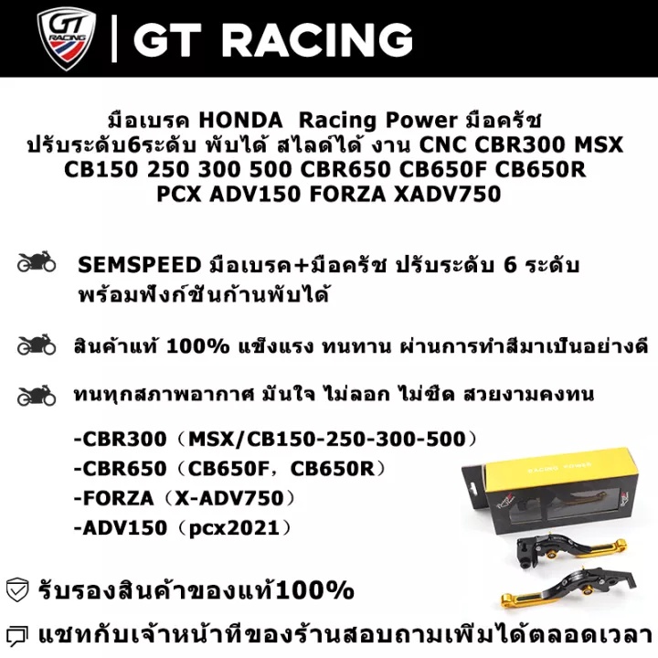 มือเบรค HONDA Racing Power มือครัช ปรับระดับ6ระดับ พับได้ สไลด์ได้ งาน CNC CBR300 MSX CB150 300 500 ADV160 CBR650
