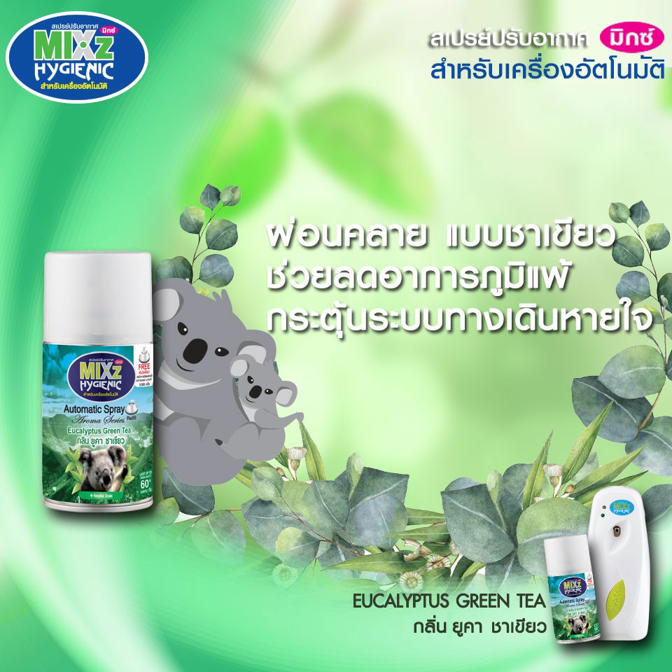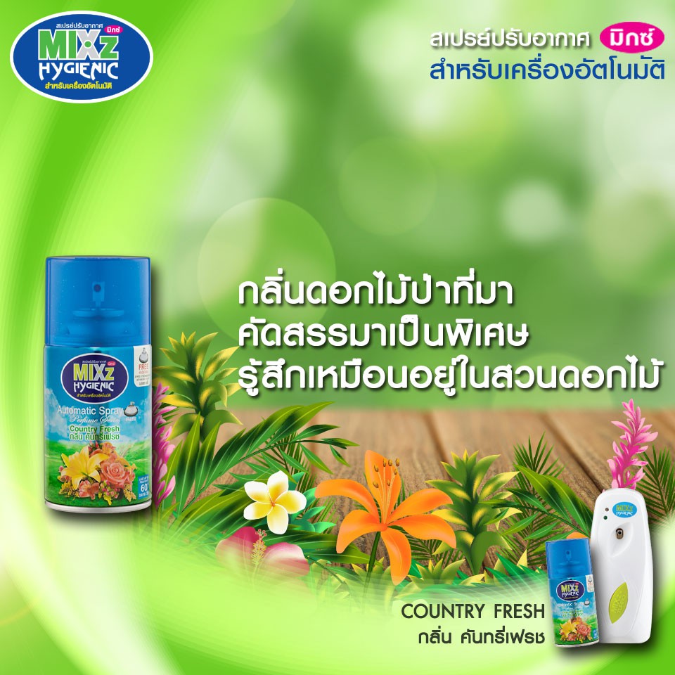 [เซ็ตคู่] Mixz Hygienic Automatic รีฟิล สเปรย์ปรับอากาศ กลิ่นคันทรีเฟรชและกลิ่นยูคา+กรีนที ขนาด 300 ml.