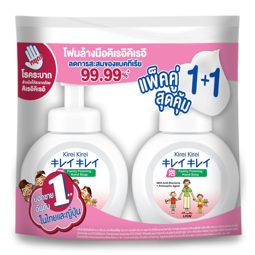 คิเรอิ คิเรอิ โฟมล้างมือ หัวปั๊ม สูตรออริจินัล 250 มล. (แพ็คคู่) KIREI KIREI ORIGINAL WITH ANTI-BACTERIA FOAMING HAND