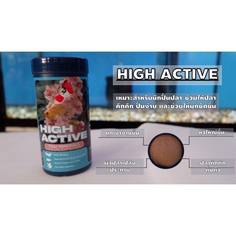 High Active (แร่ธาตุลดเครียด เร่งสี เกล็ดเงางาม) สำหรับ ปลาหมอสี ปลาน้ำจืด ปลาสวยงาม