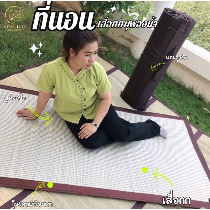 เสื่อกกบุฟองน้ำ3ฟุต แบบม้วน(90x200ซม.)พกพาสะดวก น้ำหนักเบา นอนสบาย นุ่ม หอมกก