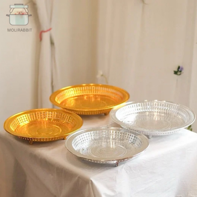 ถาดกลมรัตนโกสินทร์ 24-42 ซม สีเงิน-สีทอง.ถาดวางของไหว้ ถาดถวายพระ ถาดวางดอกไม้ พานขันหมาก ถาดพลาสติก