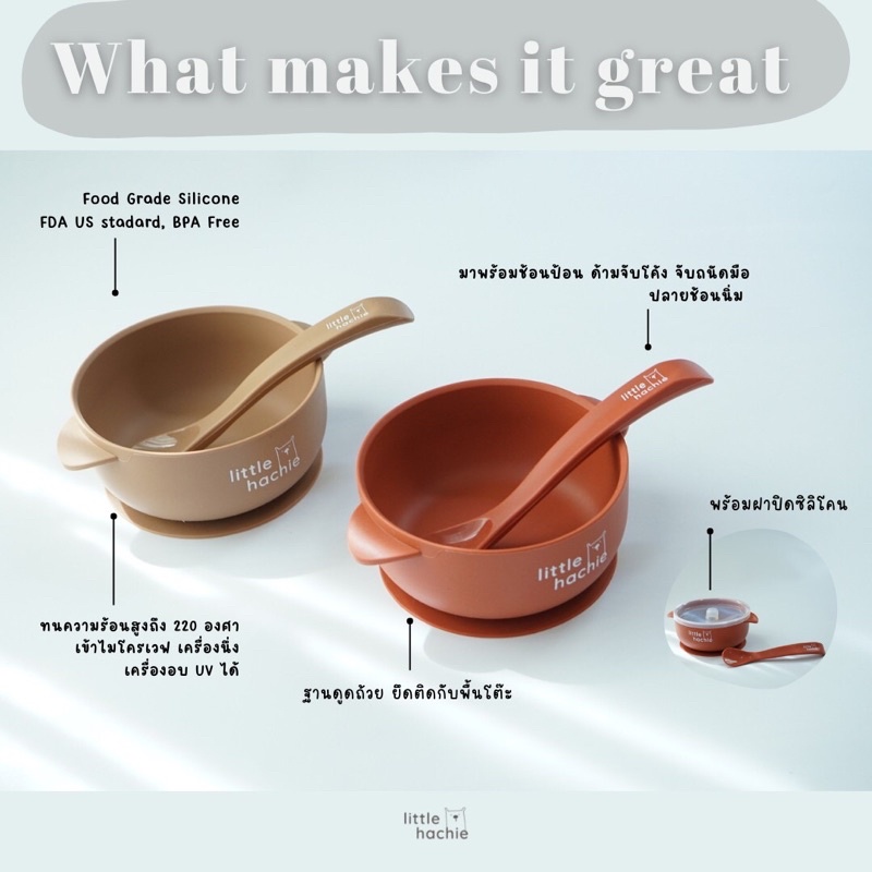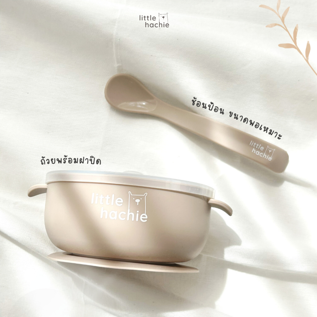 l Little hachie l ถ้วยมีฝาปิดพร้อมช้อนป้อน สำหรับวัยเริ่มทาน 6m+ ชามสำหรับเด็ก ถ้วยเด็ก