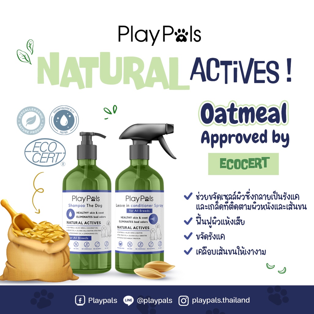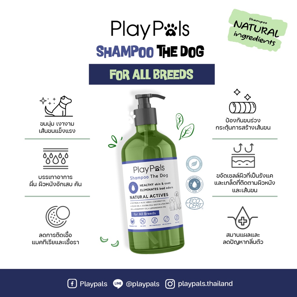 Playpals แชมพูสุนัข ลดขนร่วง ลดกลิ่นตัว บำรุงขน สูตร For all breeds