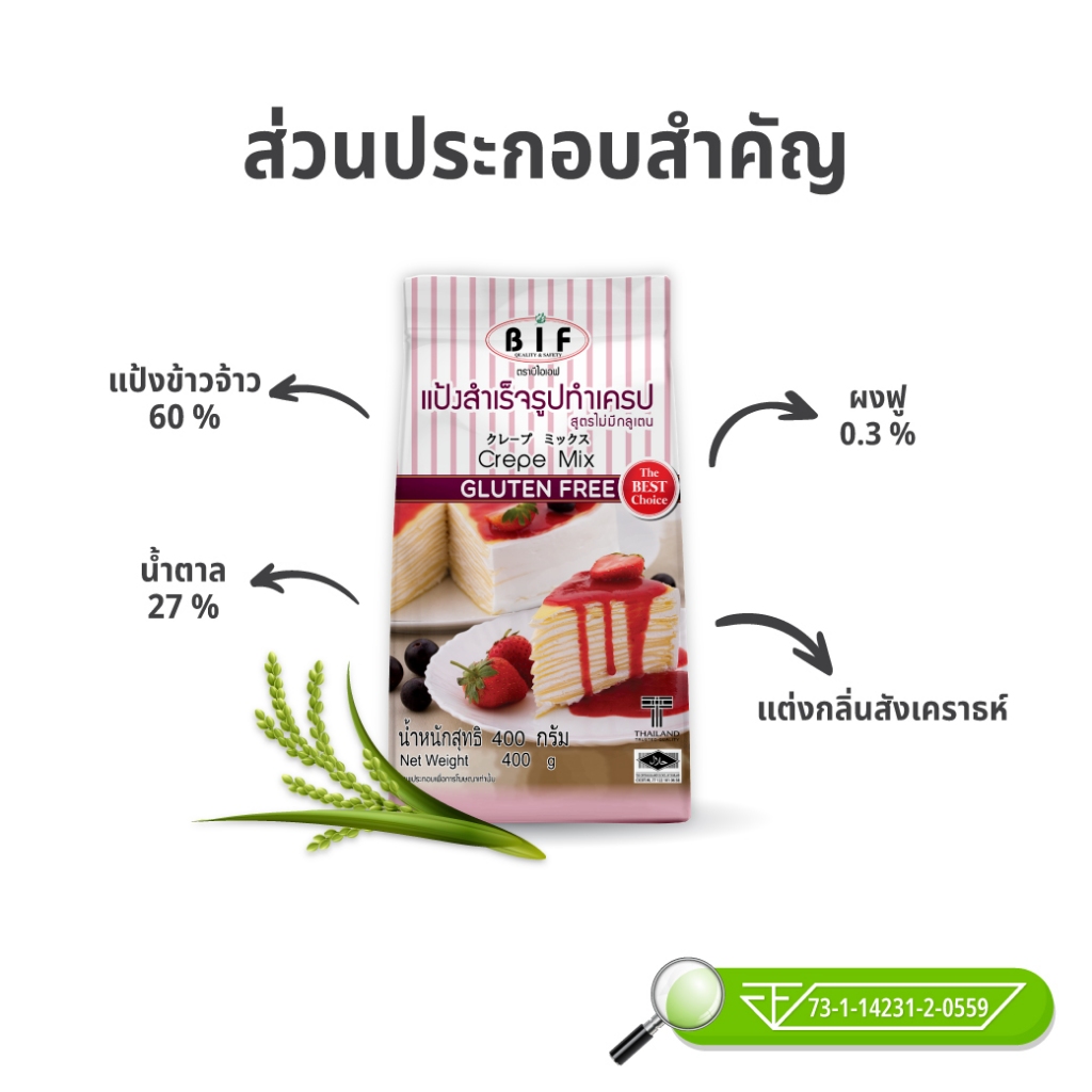 (ยกลัง) แป้งทำเครปสำเร็จรูป (Gluten Free) ตรา BIF 400 g. x 12 ถุง