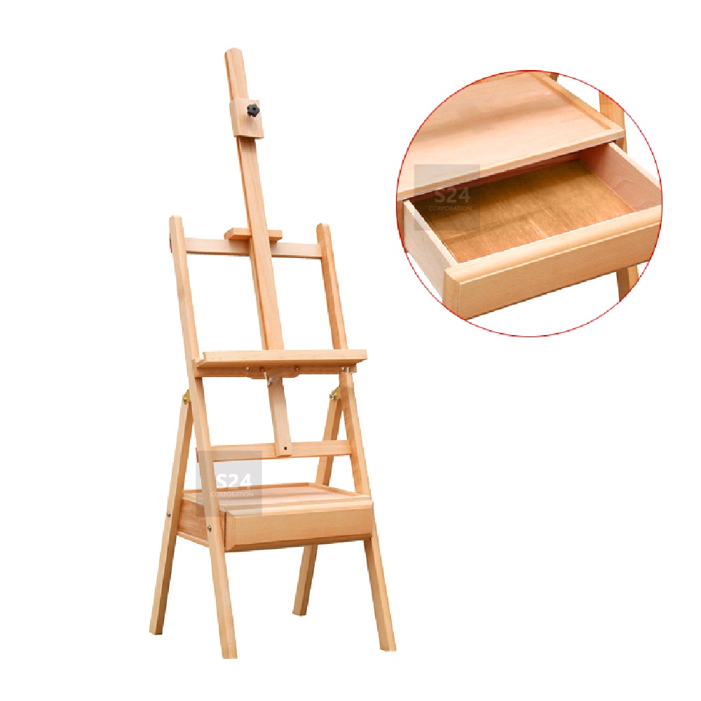 ขาตั้งรูป ขาตั้งวาดรูป ขาตั้งไม้ ขาตั้งวาดภาพ ขาตั้งเฟรม แบบมีลิ้นชัก WAKU รุ่น HJ-1A (43.5x44x145 cm) Wood Easel
