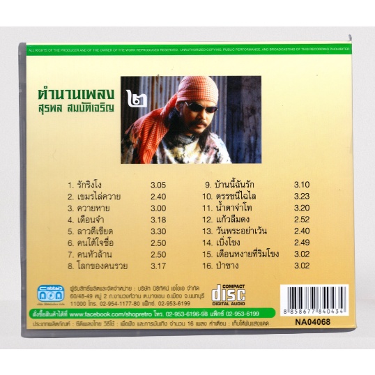 แผ่นซีดี เพลงไทย นิค นิรนาม (ตำนานเพลง สุรพล สมบัติเจริญ 2 )