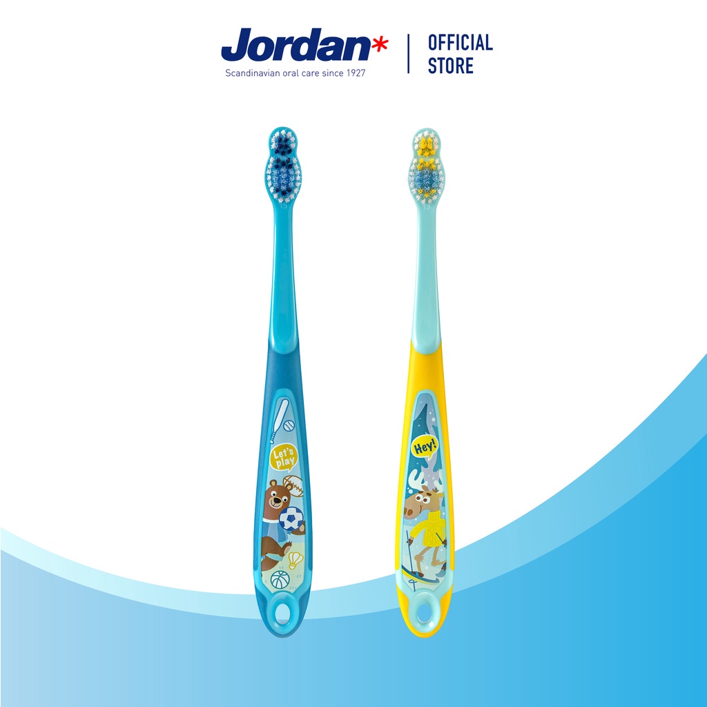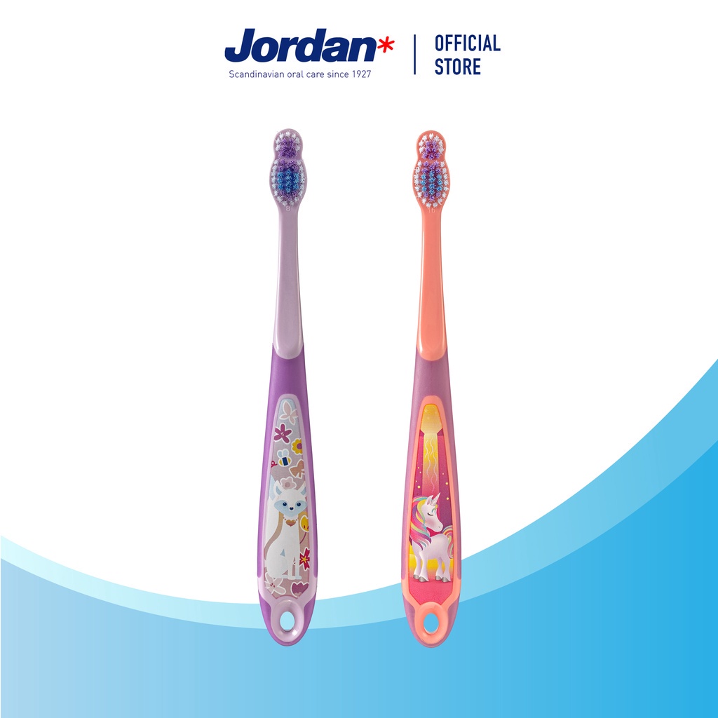 [แพ็ค2ชิ้น คละสี] Jordan จอร์แดนแปรงสีฟันเด็ก Step 3 สำหรับ 6-9 ปี