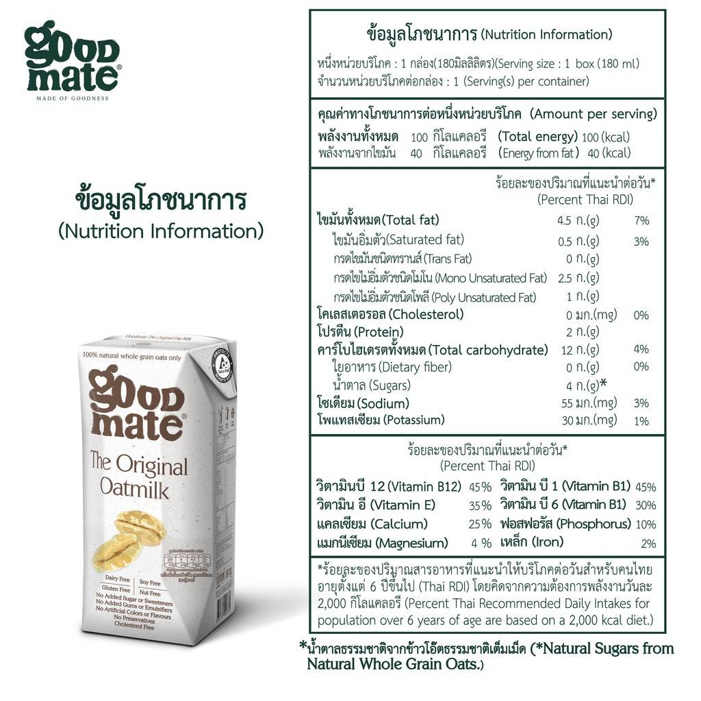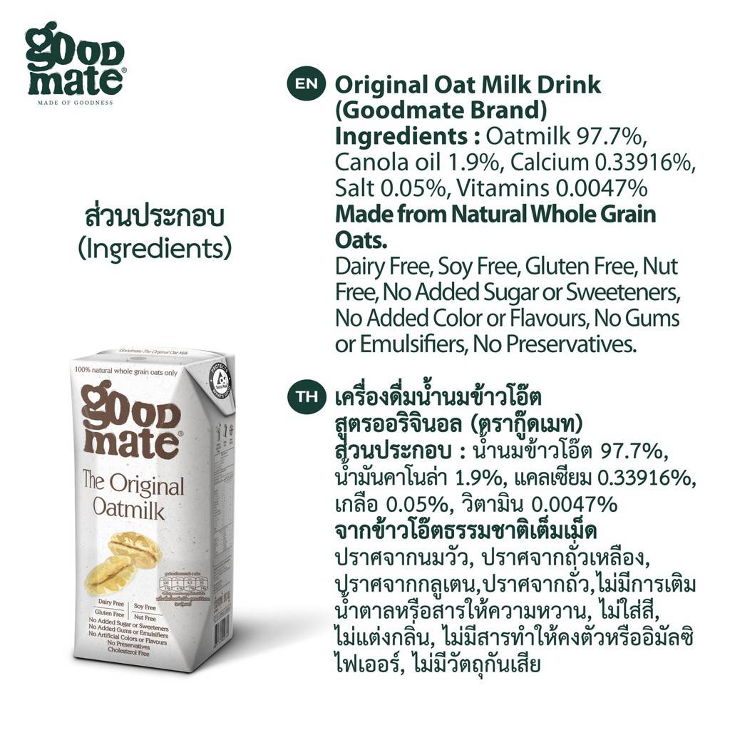 [1 แพ็ค] Goodmate นมโอ๊ตออริจินอล ขนาด 180 ml. (03559-3)