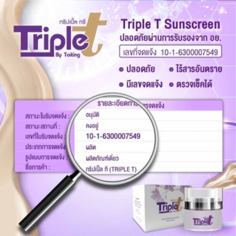 ครีมกันแดดทริปเปิ้ลทรี Triple t ของแท้ 100%