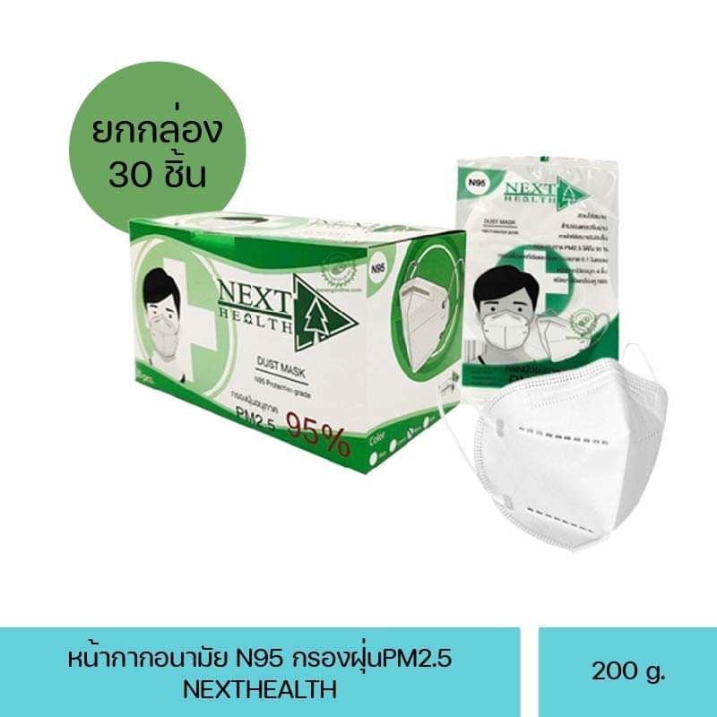 (1 กล่อง) N95 Next Health เน็กซ์เฮลท์ หน้ากากอนามัย n95 กรองฝุ่น PM.2.5 กล่อง 30 ชิ้น nexthealth
