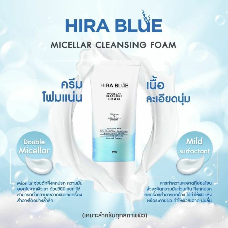 [พร้อมส่ง] โฟม Hira Blue Micellars Cleansing Foam โฟม ล้างหน้า ไฮร่าบลู ขนาด 30 g.