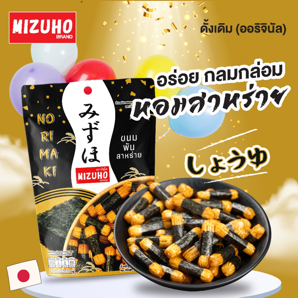 [เซ็ตคู่] - ขนมข้าวอบกรอบ ข้าวพันสาหร่าย รสดั้งเดิม 45g. และ คาคิโนะทาเนะ 50g. ตรามิซูโฮ (MIZUHO)