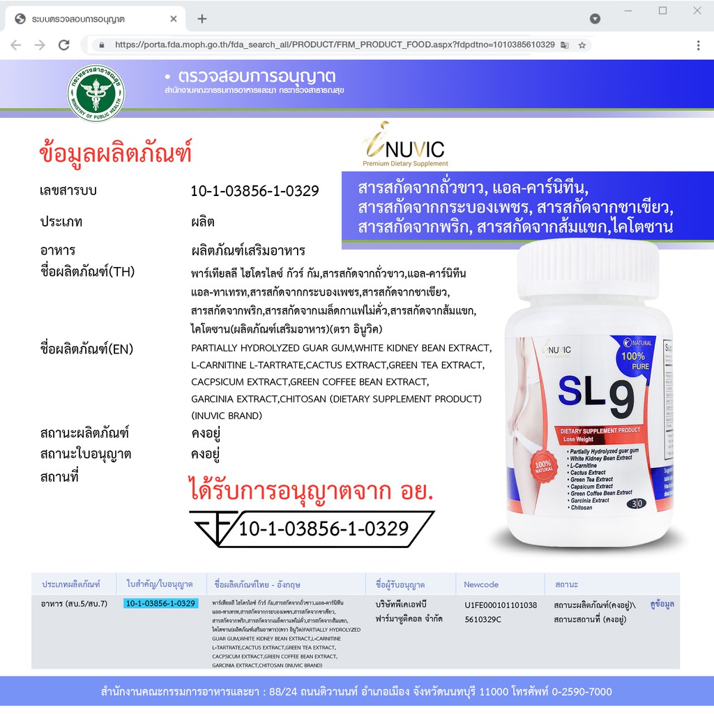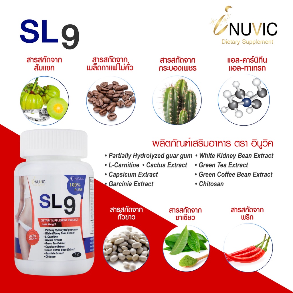 SL9 สารสกัดจากส้มแขก สารสกัดจากพริก สารสกัดจากกระบองเพชร ไคโตซาน เอสแอลไนน์ iNUVIC แอลคาร์นิทีน