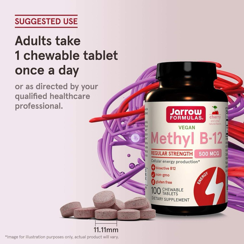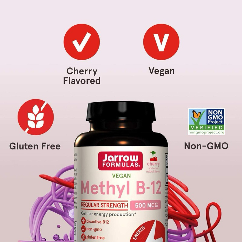 ✅พร้อมส่ง วิตามินบี12 เม็ดอม 500 mcg🍒Vitamin B-12 Methylcobalamin, Jarrow Formulas, Methyl B12, Cherry Flavor