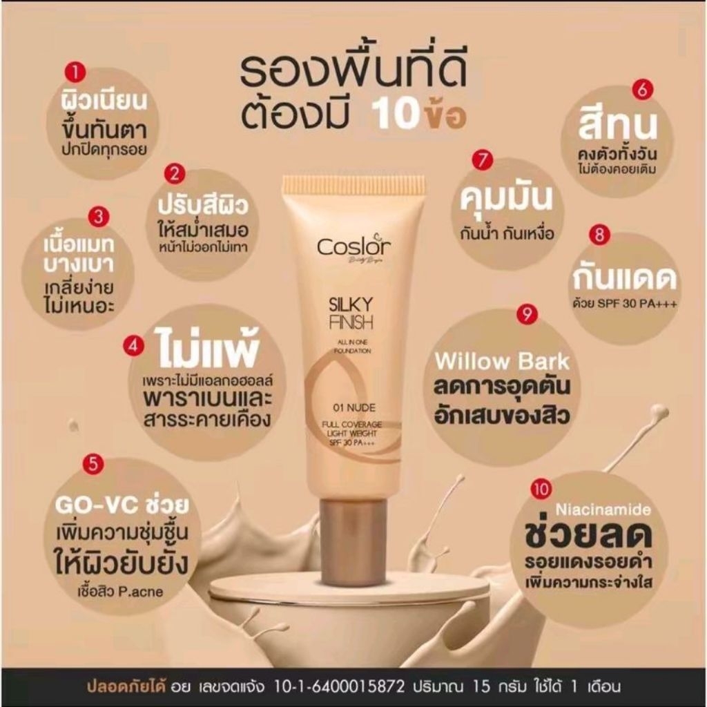 มีส่วนลด Coslor ผิวเนียนสวย ปกปิดรอยสิว คุมมัน กันน้ำกันเหงื่อ กันแดด ไม่ติดแมส รองพื้น 2 ชิ้น+พัฟ