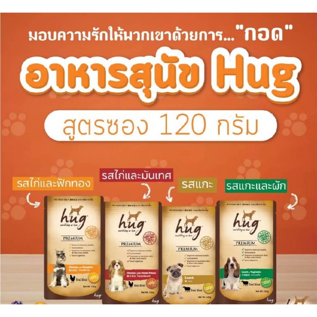 ฮัท อาหารสุนัขเปียก HUG ขนาด 120 G *************ยกโหล 12 ซองง**************