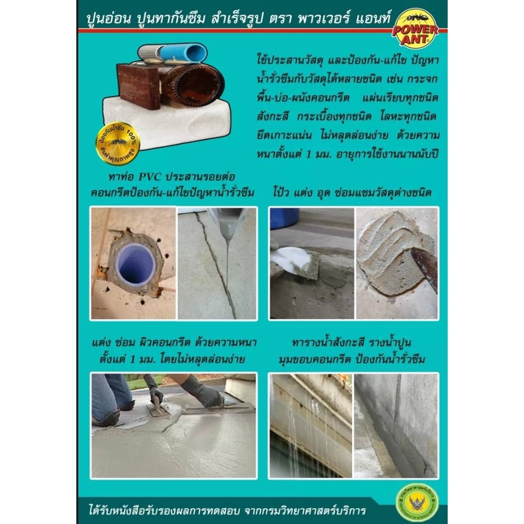 ปูนอ่อนกันซึมสำเร็จรูป ผสมน้ำใช้ได้เลย ติดวัสดุได้หลายชนิด
