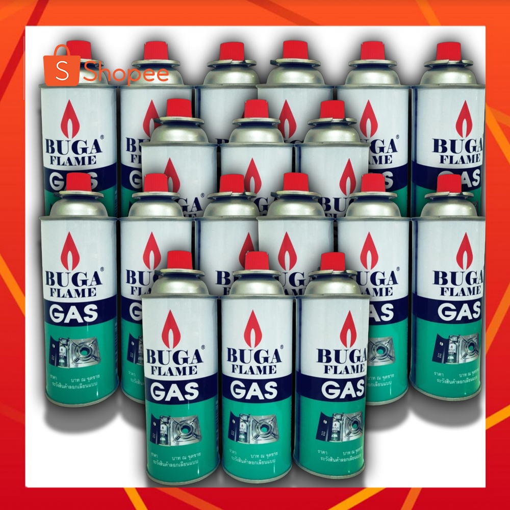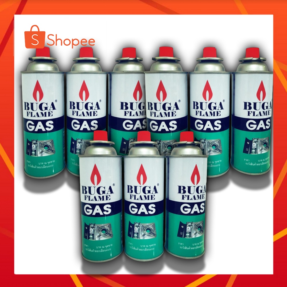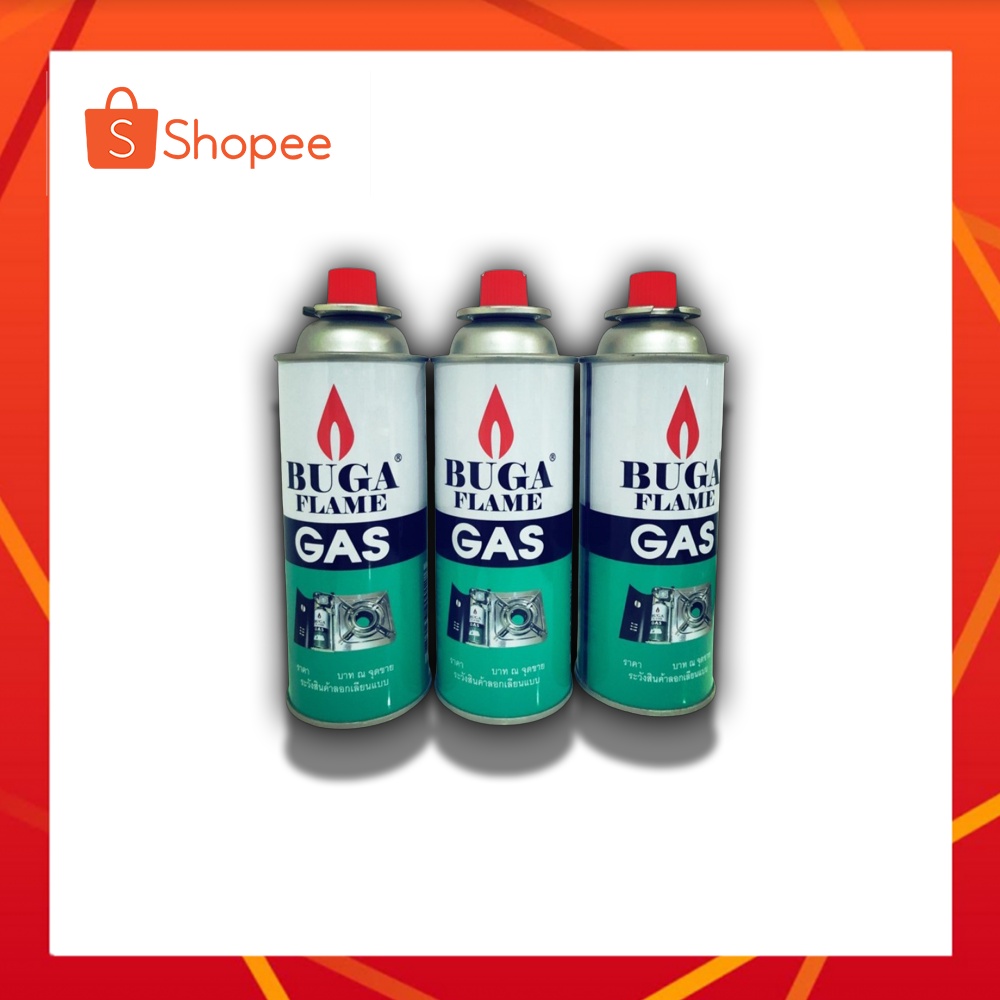 (12กระป๋อง) BUGA FLAME GAS แก๊สกระป๋อง แก๊สเตา 375มล. ฝาแดง