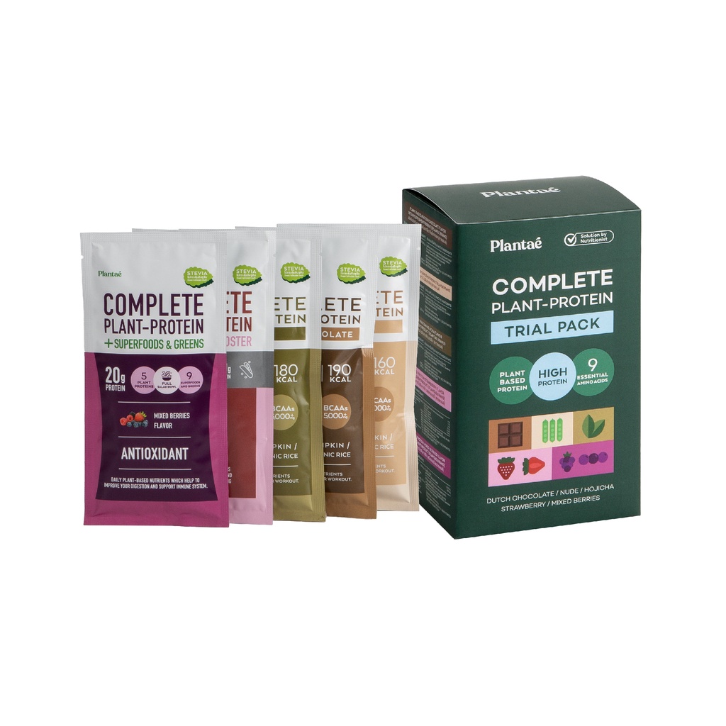 Plantae Sachet Edition : Complete Plant Protein Trial Pack 1 กล่อง 5 ซอง รวมรสชาติ โปรตีนจากพืช plant based แพลนเต้