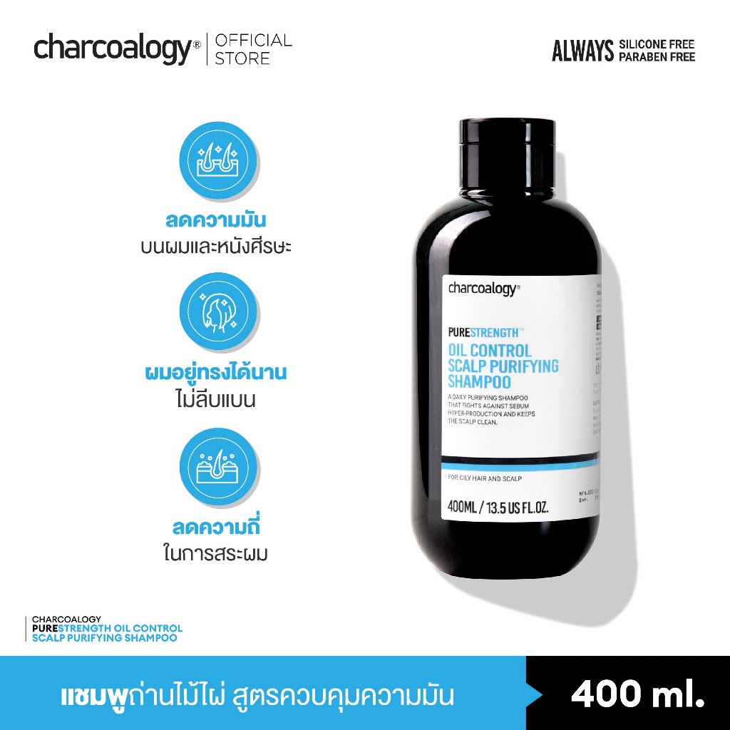 ชาร์โคโลจีแชมพูถ่านไม้ไผ่ สูตรลดความมัน Charcoalogy Oil Control Scalp Purifying Shampoo 400 ml.
